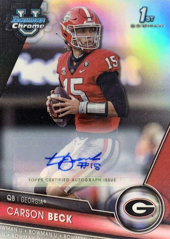 Best Prices Available For Sale of Carson Beck 2023 Bowman Chrome University #44 Prospect Auto - Refractor /499 (1st)