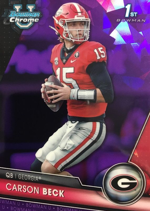 Best Prices Available For Sale of Carson Beck 2023 Bowman Chrome University Sapphire Edition #44 Purple /10 (1st)