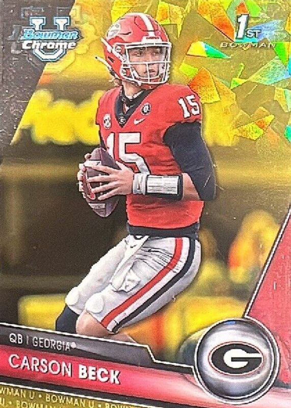 Carson Beck 2023 Bowman U 1st Chrome Sapphire Yellow Refractor Rookie 75/75 RC!