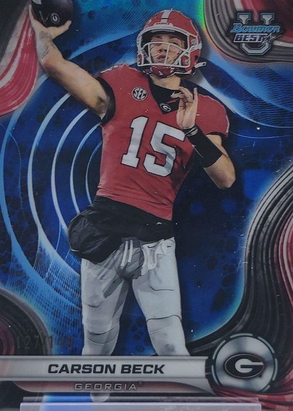 Auctions Ending Soon for Carson Beck 2024 Bowman Best University #4 Blue Refractor /149 RAW