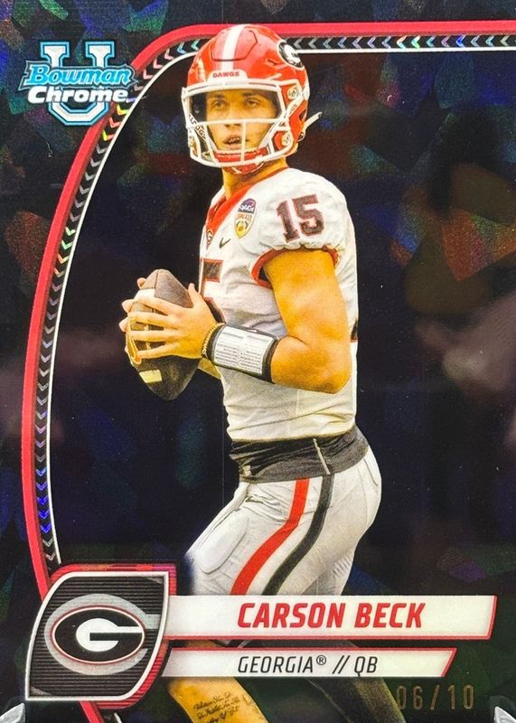 Auctions Ending Soon for Carson Beck 2024 Bowman Chrome University Sapphire Edition #2 Black /10 RAW