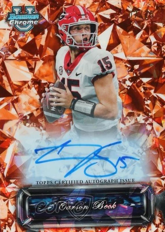Auctions Ending Soon for Carson Beck 2024 Bowman Chrome University Sapphire Edition #SS-CB Sapphire Selections Autographs - Orange /25 RAW