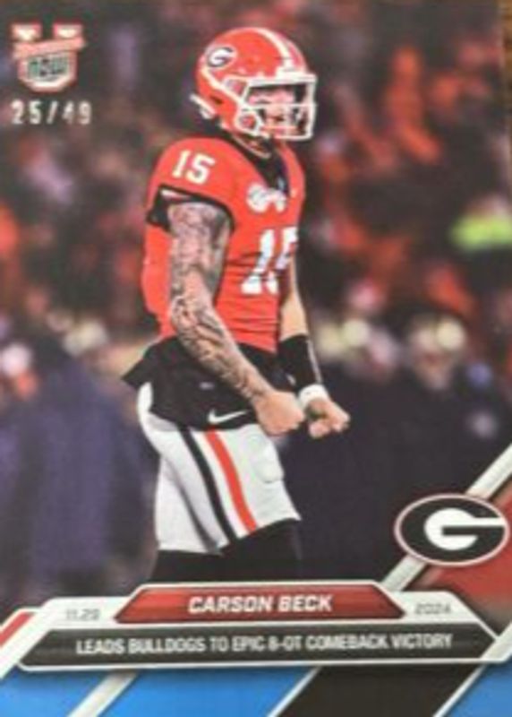 2024 Topps Bowman U Now 49 Carson Beck Georgia Bulldogs Epic OT Win Blue 24/49