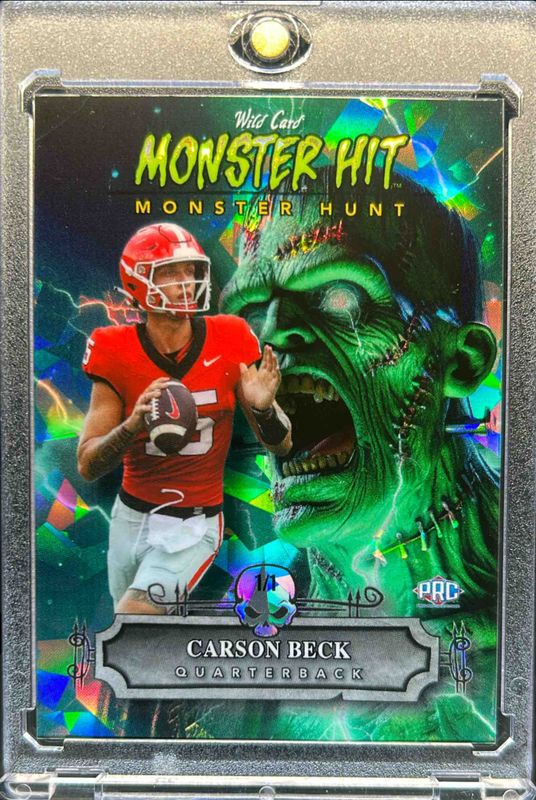 Carson Beck 2024 Wild Card Haunted Hits #MHF-CB Monster Hit Frankenstein Crystal Holo Green /1 RAW Price Guide