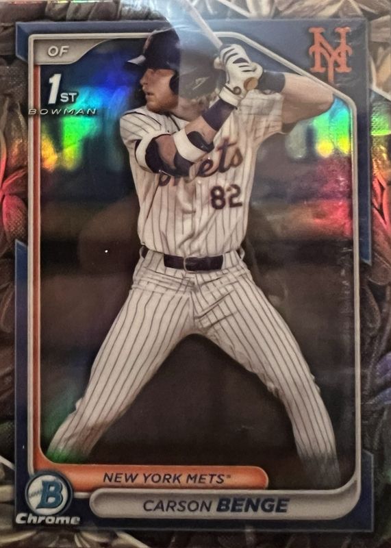 This card is 1 of 50 Carson Benge's card variations in the 2024 Bowman Draft set being tracked by Sports Card Investor, including Chrome (1st), Chrome - Bubble Gum (1st), Chrome - Lunar Glow Refractor (1st), Chrome - Peanuts (1st), and Chrome - Pearl Refractor (1st).