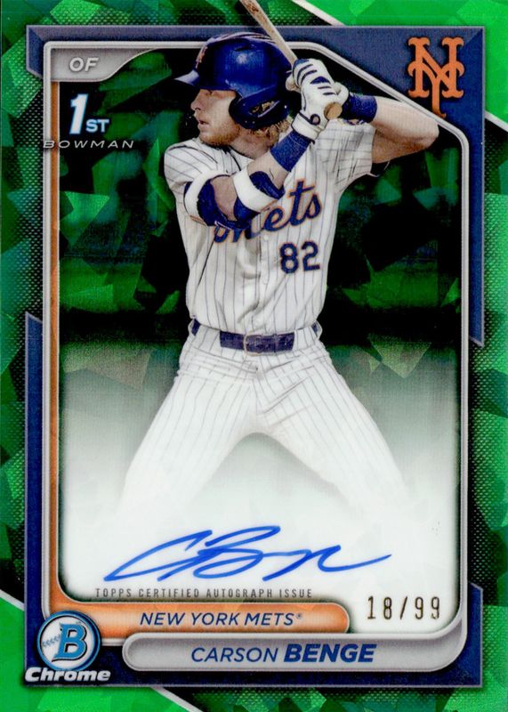 Best Prices Available For Sale of Carson Benge 2024 Bowman Draft Sapphire Edition #CPA-CBG Chrome Prospect Auto - Green /99 (1st)