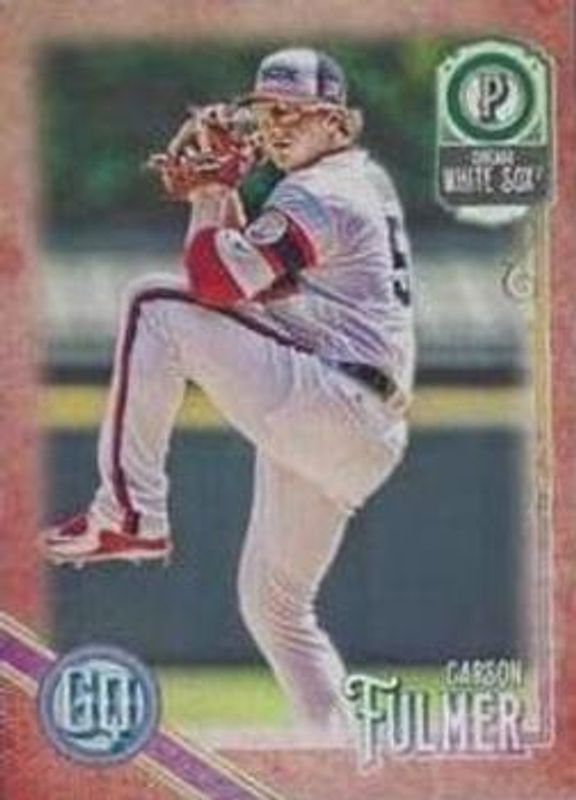 The Carson Fulmer 2018 Topps Gypsy Queen #239 Red /10 card is 1 of 12 Carson Fulmer's card variations in the 2018 Topps Gypsy Queen set being tracked by Sports Card Investor, including Base, Bazooka Back, GQ Logo Swap, Green, and Missing Black Plate.