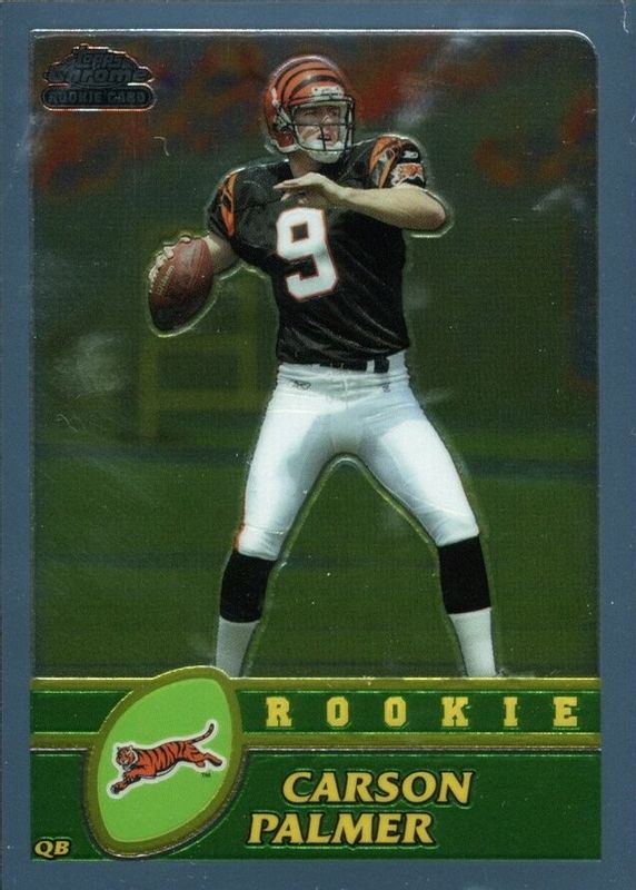 The Carson Palmer 2003 Topps Chrome #166 Base Rookie card in Raw condition has moved down -$4.02 (-50.2%) in the last 30 days and was last sold for $3.99 .