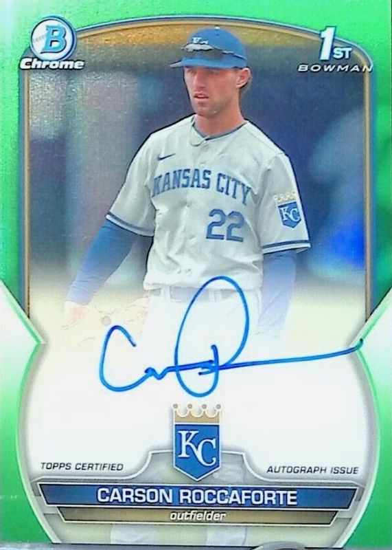 Carson Roccaforte 2023 Bowman Draft #CDA-CR Chrome Prospect Auto - Green Refractor /99 (1st) RAW Price Guide