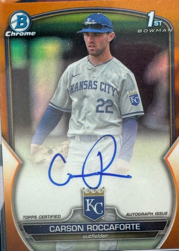 2023 Bowman Chrome Carson Roccaforte 1st Orange Refractor Auto /25