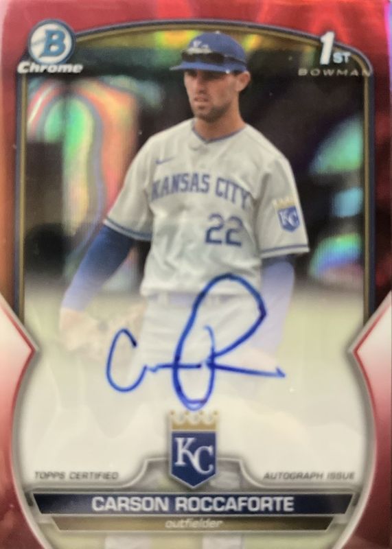 Carson Roccaforte 2023 Bowman Draft #CDA-CR Chrome Prospect Auto - Red Lava Refractor /5 (1st) RAW Price Guide