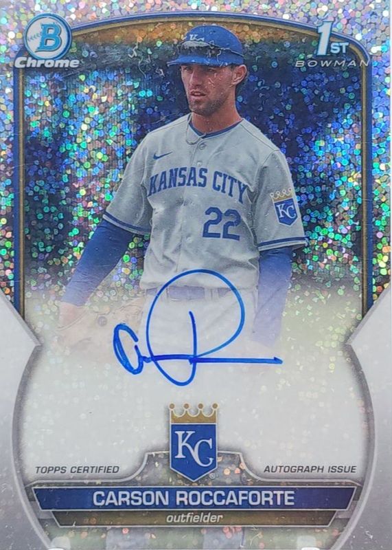Auctions Ending Soon for Carson Roccaforte 2023 Bowman Draft #CDA-CR Chrome Prospect Auto - Sparkle Refractor /71 (1st) RAW