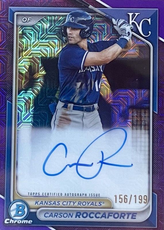 Carson Roccaforte 2024 Bowman Mega Box #BMA-CR Chrome Prospect Auto - Purple Refractor /199 RAW Price Guide