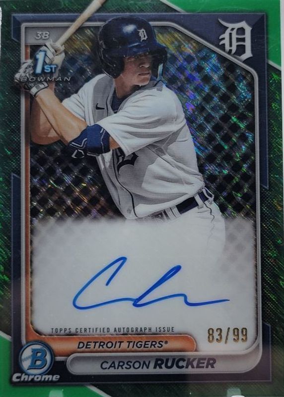 🔥2024 Bowman Carson Rucker 1st Chrome Auto /99 Green Grass Refractor Tigers📈🔥