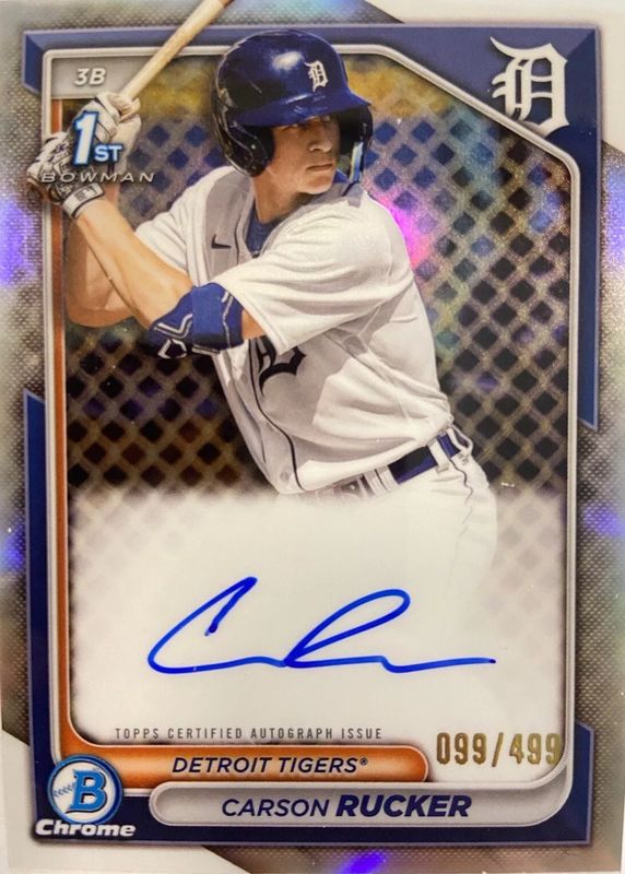 Best Prices Available For Sale of Carson Rucker 2024 Bowman #CPA-CR Chrome Prospect Auto - Refractor /499 (1st)