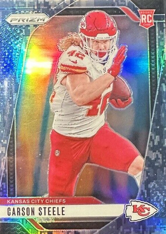 This card is 1 of 102 Carson Steele's card variations in the 2024 Prizm set being tracked by Sports Card Investor, including Base, Choice Blue Yellow Green, Choice Silver, Disco, and Green.