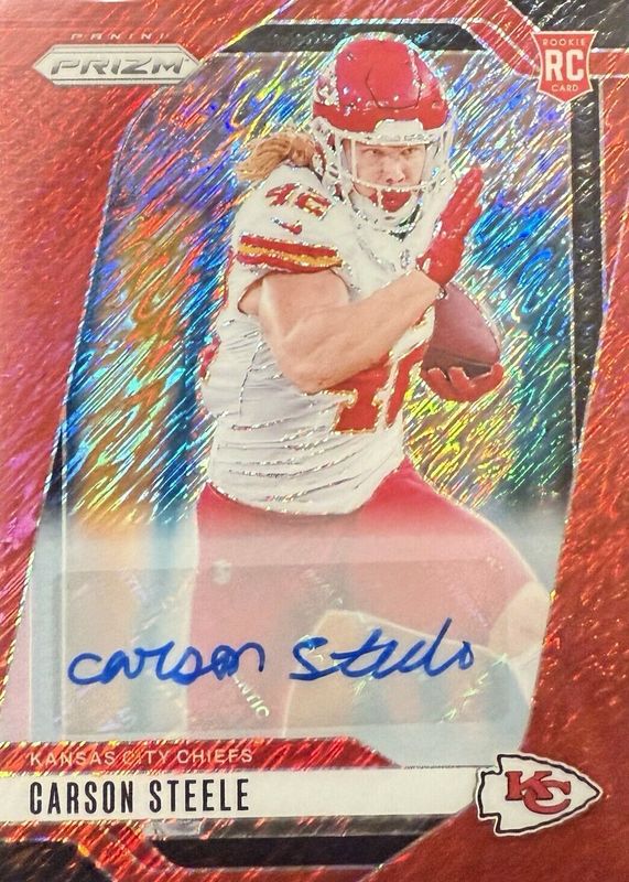 2024 Panini Prizm Carson Steele Auto Red Shimmer RC #7/35