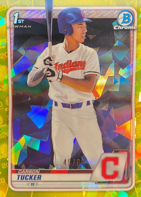 2020 Bowman Chrome Draft Sapphire Carson Tucker Prospect Yellow Refractor #47/99