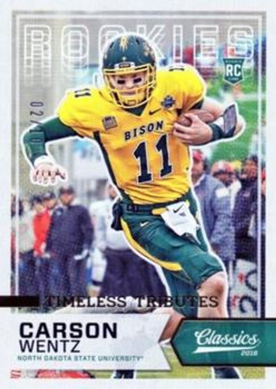 Carson Wentz 2016 Classics #268 Timeless Tributes Gold /10 Rookie RAW Price Guide