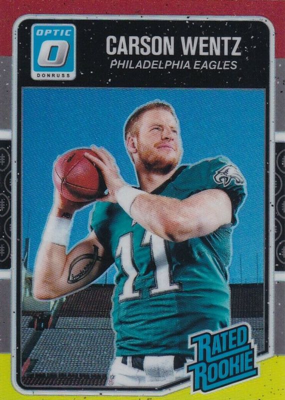 CARSON WENTZ 2016 Donruss Optic #156 Red & Yellow Holo Prizm Rated Rookie RC Qty