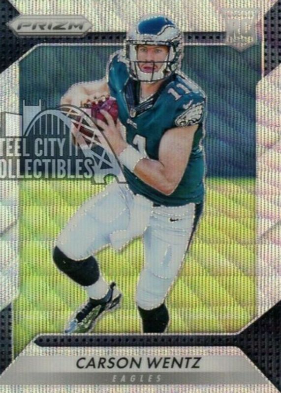 2016 PANINI PRIZM CARSON WENTZ EAGLES BLUE WAVE PRIZM ROOKIE /149 RC Refractor