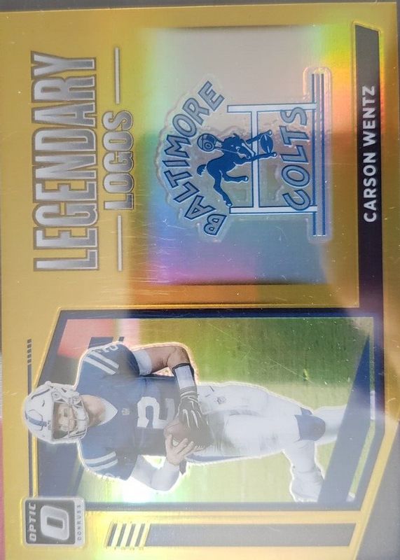 The Carson Wentz 2021 Optic #LL-9 Legendary Logos - Gold /10 card in Raw condition has not changed in price in the last 30 days and was last sold for $23.00 .