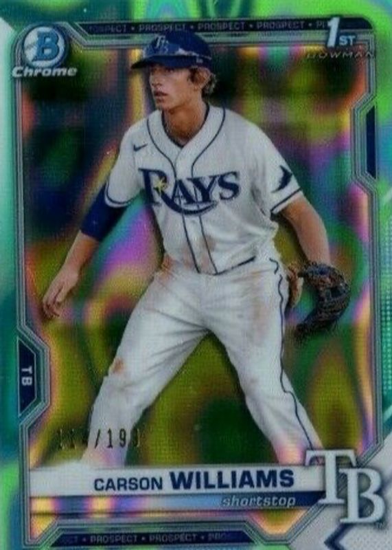 Carson Williams 2021 Bowman Draft #BDC-180 Chrome - Aqua Lava Refractor /199 (1st) RAW Price Guide