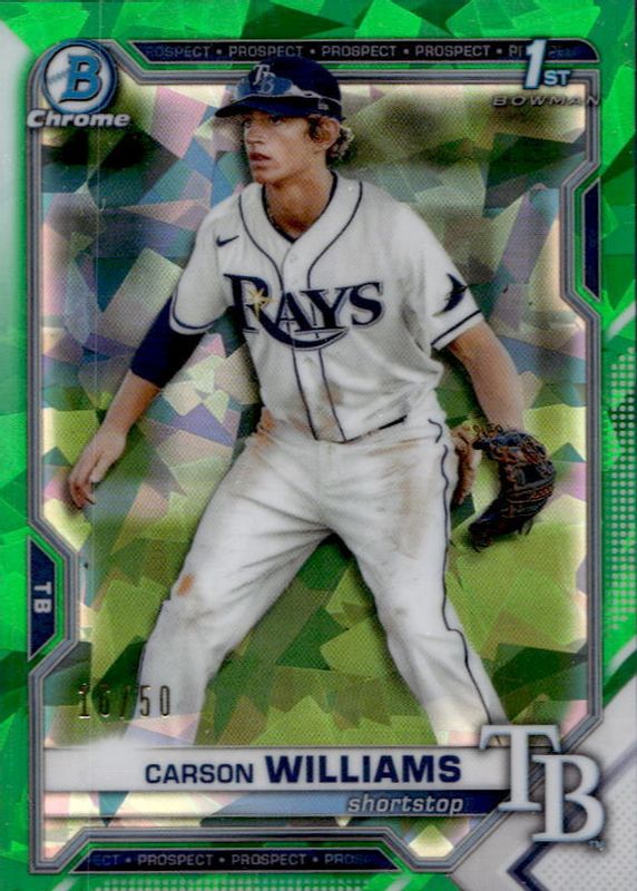 Carson Williams 2021 Bowman Draft Sapphire Edition #BDC-180 Chrome - Green /50 (1st) RAW Price Guide