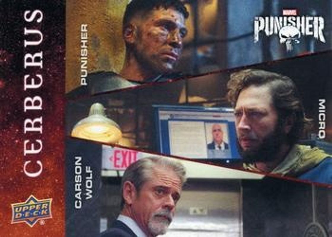The Carson Wolf 2020 Upper Deck Punisher Season 1 #C-10 Cerberus card is 1 of 3 Carson Wolf's card variations in the 2020 Upper Deck Punisher Season 1 set being tracked by Sports Card Investor, including Blown Away Achievements, and Patch Work Singles Manufactured Patch.
