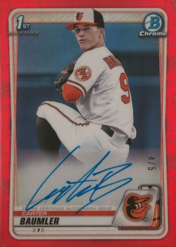 Carter Baumler 2020 Bowman Draft #CDA-CB Chrome DP Auto - Red Refractor /5 (1st) RAW Price Guide