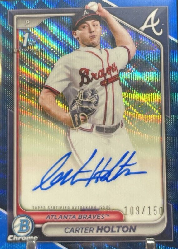Carter Holton Chrome Prospect Auto 44/150 2024 Bowman Blue Wave Braves #CPA-CH