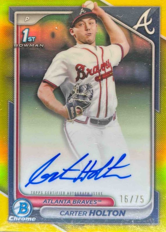 2024 1st Bowman Chrome CARTER HOLTON True Yellow Refractor Auto /75 BRAVES!!!
