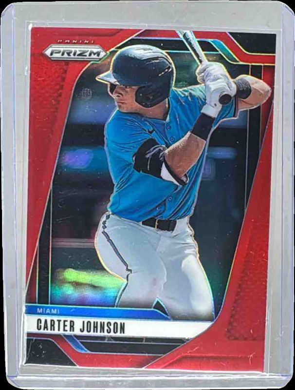 The Carter Johnson 2025 Prizm #91 Red /299 card is 1 of 48 Carter Johnson's card variations in the 2025 Prizm set being tracked by Sports Card Investor, including Base, Blue Ice, Glitter, Green, and Green Ice.