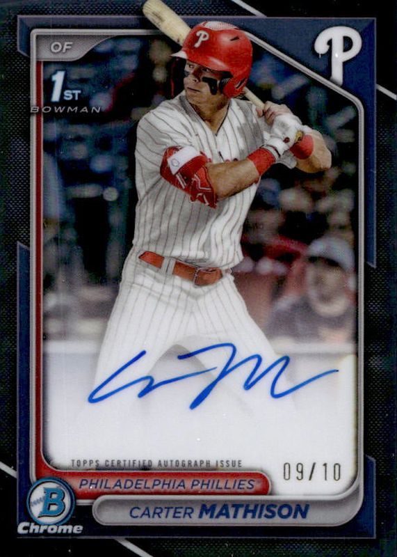 Carter Mathison 2024 Bowman Draft #CPA-CMA Chrome DP Auto - Black Refractor /10 (1st) RAW Price Guide