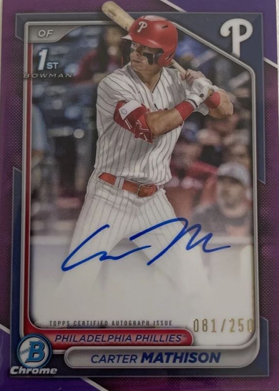 CARTER MATHISON 2024 BOWMAN CHROME 1ST PURPLE REFRACTOR AUTO /250 Q0208