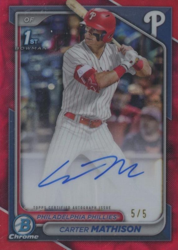 Carter Mathison 2024 Bowman Draft #CPA-CMA Chrome DP Auto - Red Lava Refractor /5 (1st) RAW