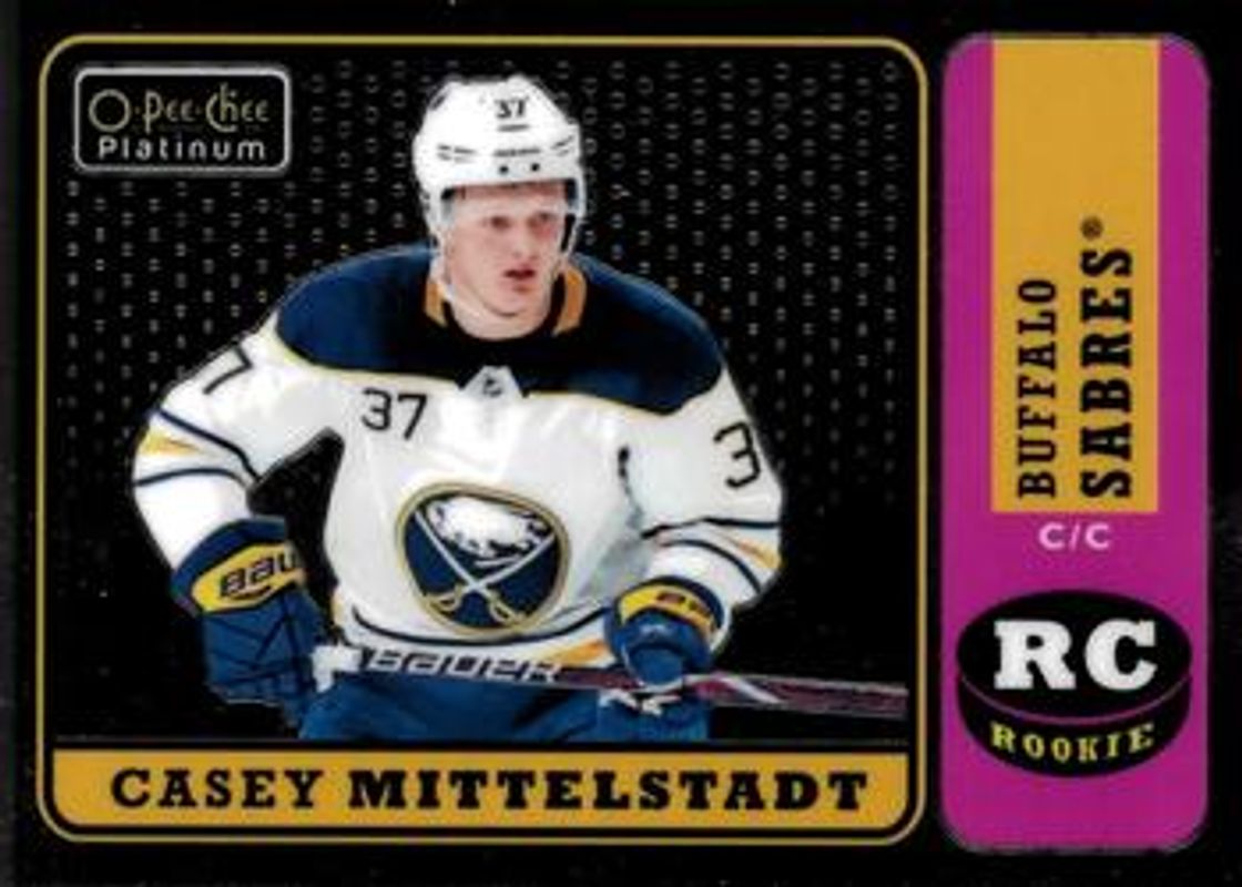 Casey Mittelstadt's Hockey cards are available in at least 61 sets. Casey Mittelstadt's biggest 7-day price movers are 2018 O-Pee-Chee Platinum #R-95 Retro, 2018 O-Pee-Chee Platinum #FN-11 The Future Is Now Mosiac, and 2018 O-Pee-Chee Platinum #190 Arctic Freeze /79.
