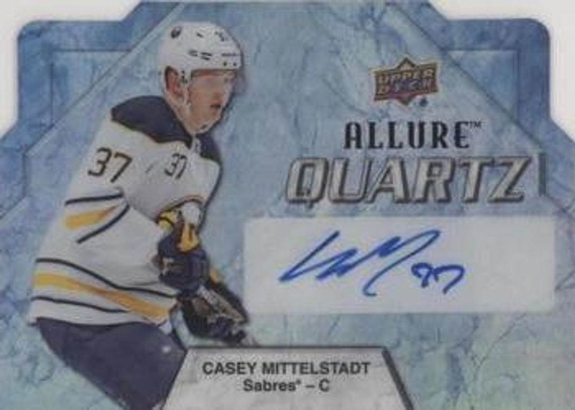 The Casey Mittelstadt 2019 Upper Deck Allure #AQ-MI Quartz Autographs Blue /5 card is 1 of 2 Casey Mittelstadt's card variations in the 2019 Upper Deck Allure set being tracked by Sports Card Investor, including Quartz Autographs.