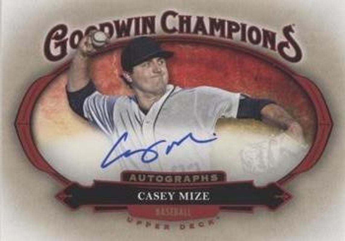 The Casey Mize 2020 Upper Deck Goodwin Champions #HA-CM Autographs Horizontal card is 1 of 60 Casey Mize's card variations in the 2020 Upper Deck Goodwin Champions set being tracked by Sports Card Investor, including #107 Base, #7 Base, #57 Base, #7 3 D Lenticular, and #7 Black & White.