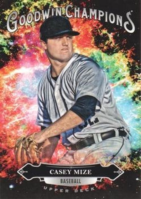 The Casey Mize 2020 Upper Deck Goodwin Champions #107 Base card is 1 of 60 Casey Mize's card variations in the 2020 Upper Deck Goodwin Champions set being tracked by Sports Card Investor, including #7 Base, #57 Base, #7 3 D Lenticular, #7 Black & White, and Blank Back.