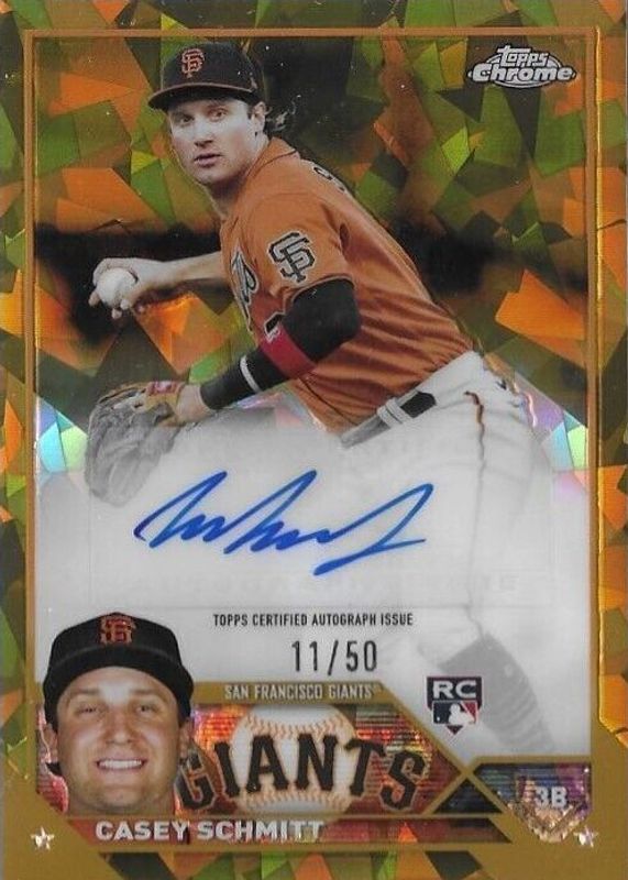 This card is 1 of 21 Casey Schmitt's card variations in the 2023 Topps Chrome Update Sapphire Edition set being tracked by Sports Card Investor, including Base, Rookie Debut, Gold /50, Rookie Debut - Gold /50, and Orange /25.