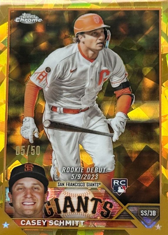 Best Prices Available For Sale of Casey Schmitt 2023 Topps Chrome Update Sapphire Edition #USCS198 Rookie Debut - Gold /50