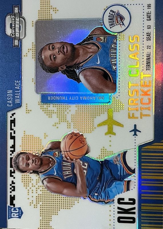 The Cason Wallace 2023 Contenders Optic #7 First Class Ticket - Gold /10 Rookie card in Raw condition has not changed in price in the last 30 days and was last sold for $24.00 .