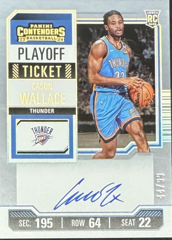 2023 Panini Contenders CASON WALLACE /99 Rookie RC Auto Playoff Ticket OKC #123