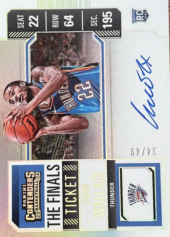 The Cason Wallace 2023 Contenders #123 Rookie Ticket Auto Variation - Finals Ticket /49 card in Raw condition has not changed in price in the last 30 days and was last sold for $60.00 .
