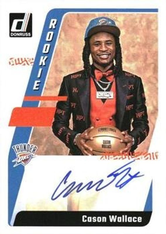 The Cason Wallace 2023 Donruss #ND-CWL Next Day Autographs Rookie card is 1 of 87 Cason Wallace's card variations in the 2023 Donruss set being tracked by Sports Card Investor, including Base, Choice, Holo Green Laser, Holo Red & Gold Laser, and Press Proof Silver.