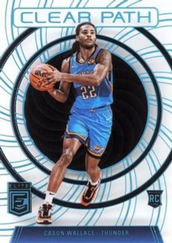 The Cason Wallace 2023 Elite #8 Clear Path - Black /1 Rookie card is 1 of 63 Cason Wallace's card variations in the 2023 Elite set being tracked by Sports Card Investor, including Base, Aspirations (/78), International, International Hyper Red & Green, and Orange.