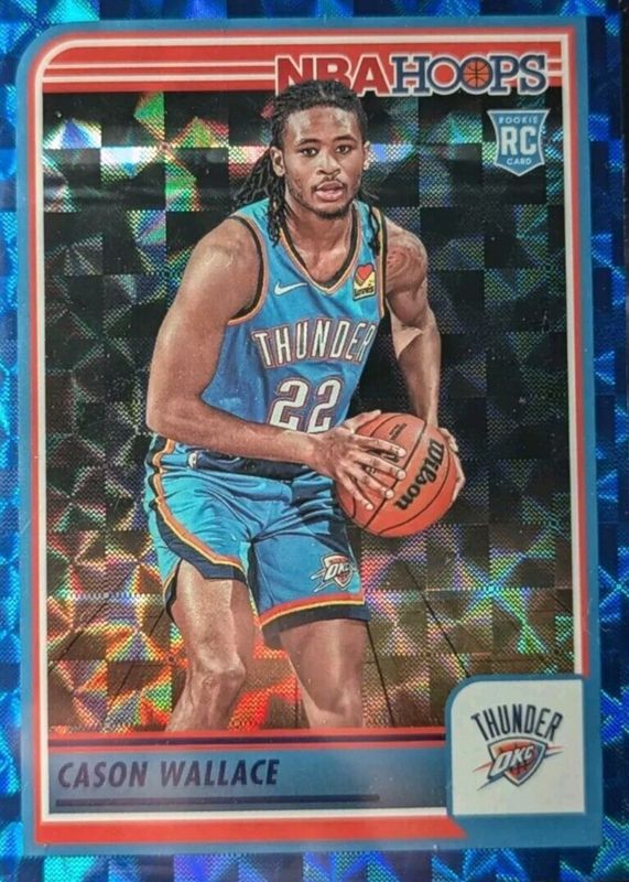 The Cason Wallace 2023 Hoops #252 Hyper Blue Rookie card in Raw condition has not changed in price in the last 30 days and was last sold for $0.99 .