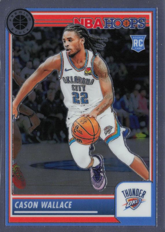 The Cason Wallace 2023 Hoops Premium Stock #76 Base Rookie card in Raw condition has moved up $2.98 (+301%) in the last 30 days and was last sold for $3.97 .