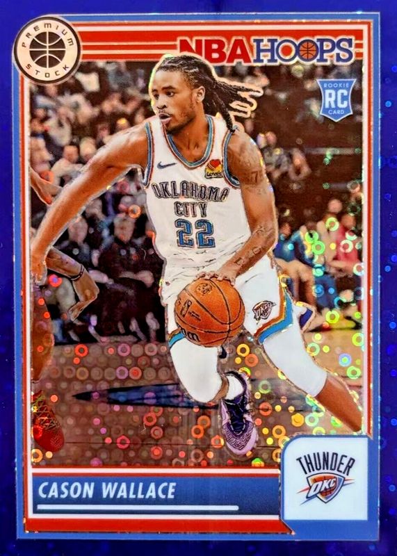 This card is 1 of 101 Cason Wallace's card variations in the 2023 Hoops Premium Stock set being tracked by Sports Card Investor, including Base, Rising Stars, Disco, Ice, and Multi Wave.